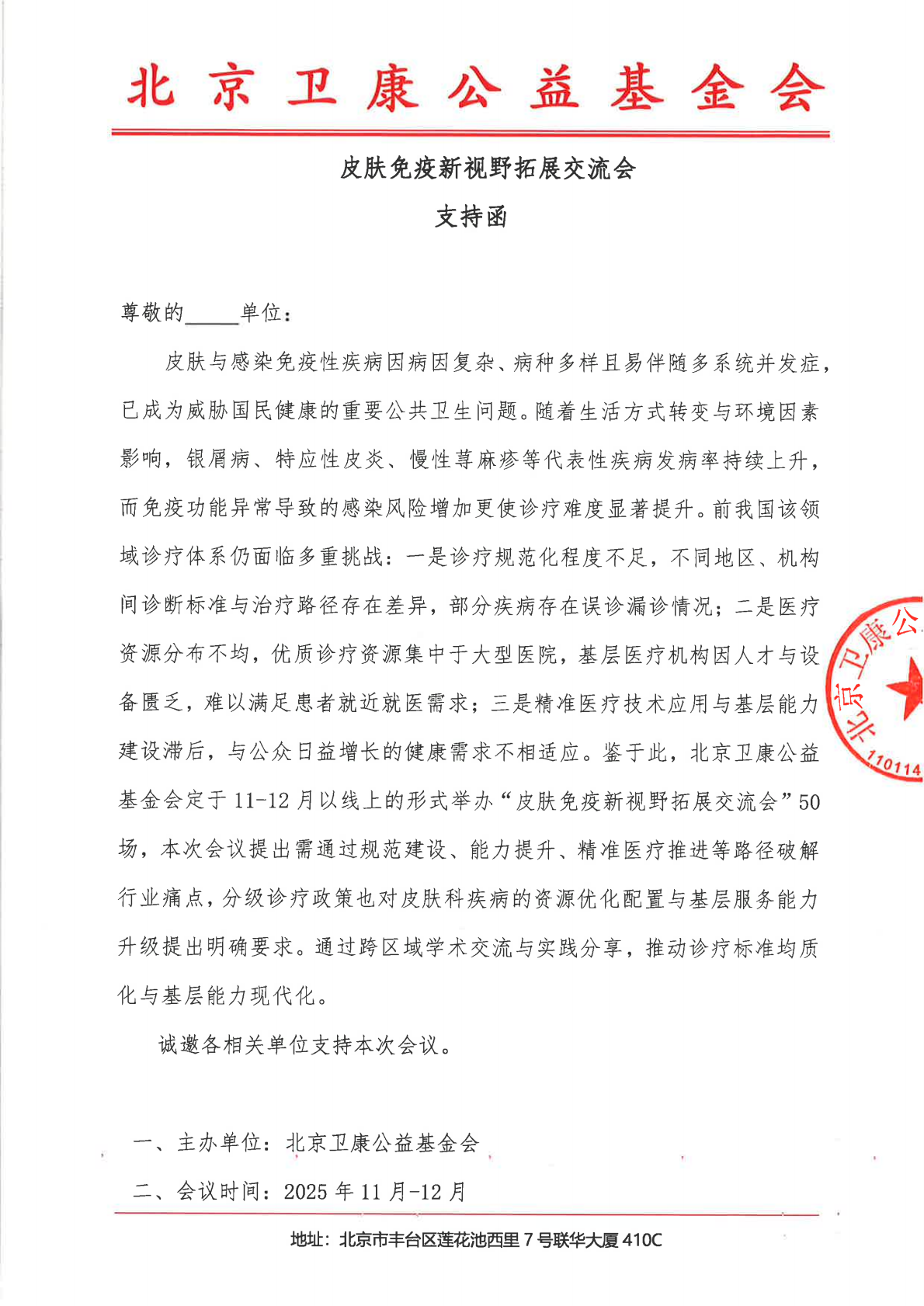 支持函-皮肤免疫新视野拓展交流会
