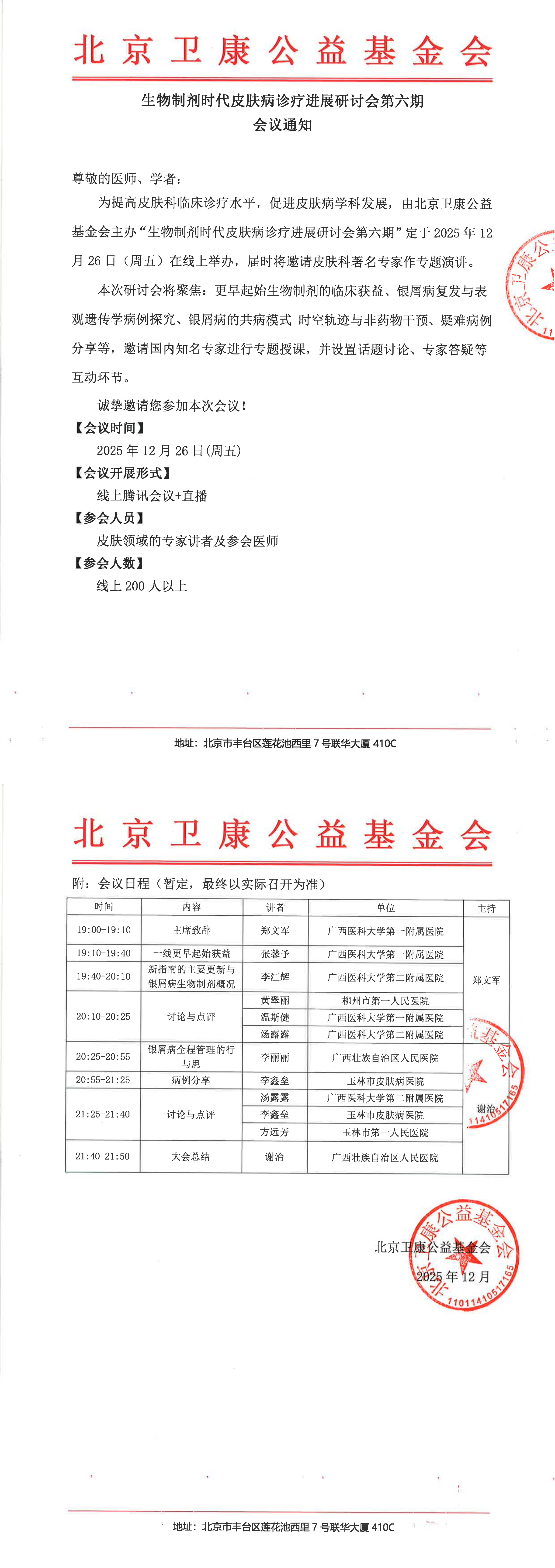 生物制剂时代皮肤病诊疗进展研讨会第六期-会议通知