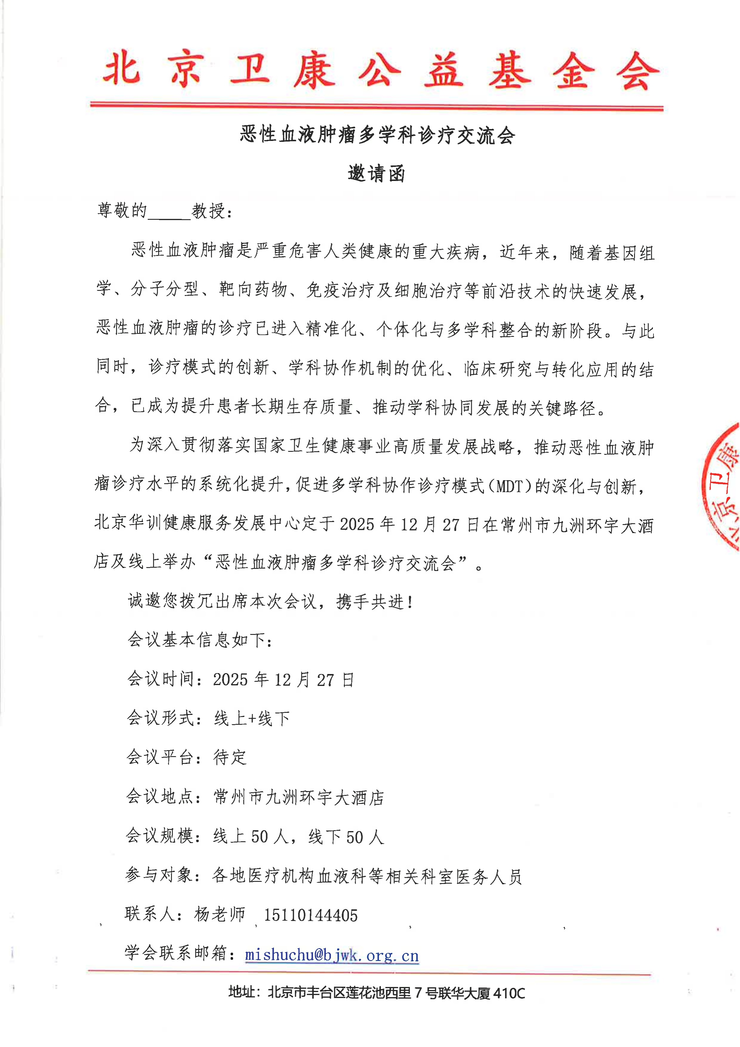 邀请函-恶性血液肿瘤多学科诊疗交流会