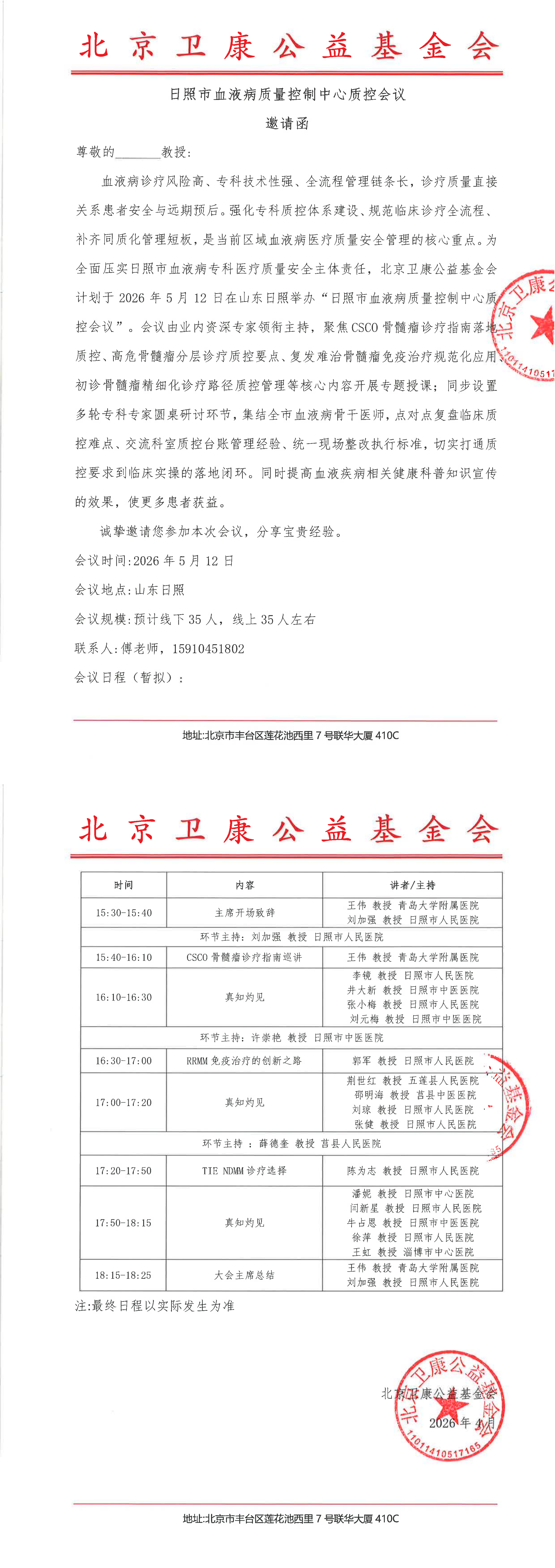 邀请函-日照市血液病质量控制中心质控会议