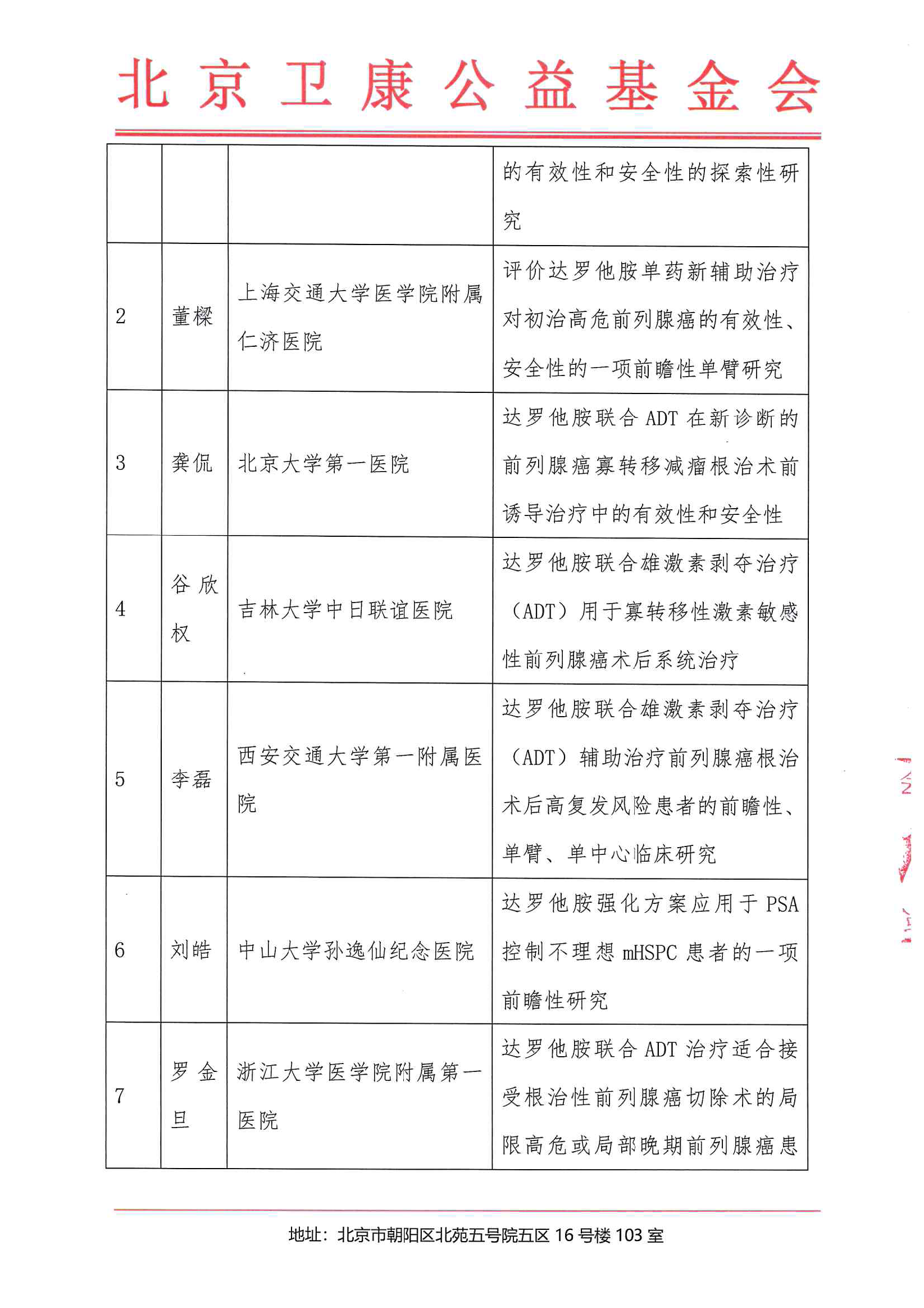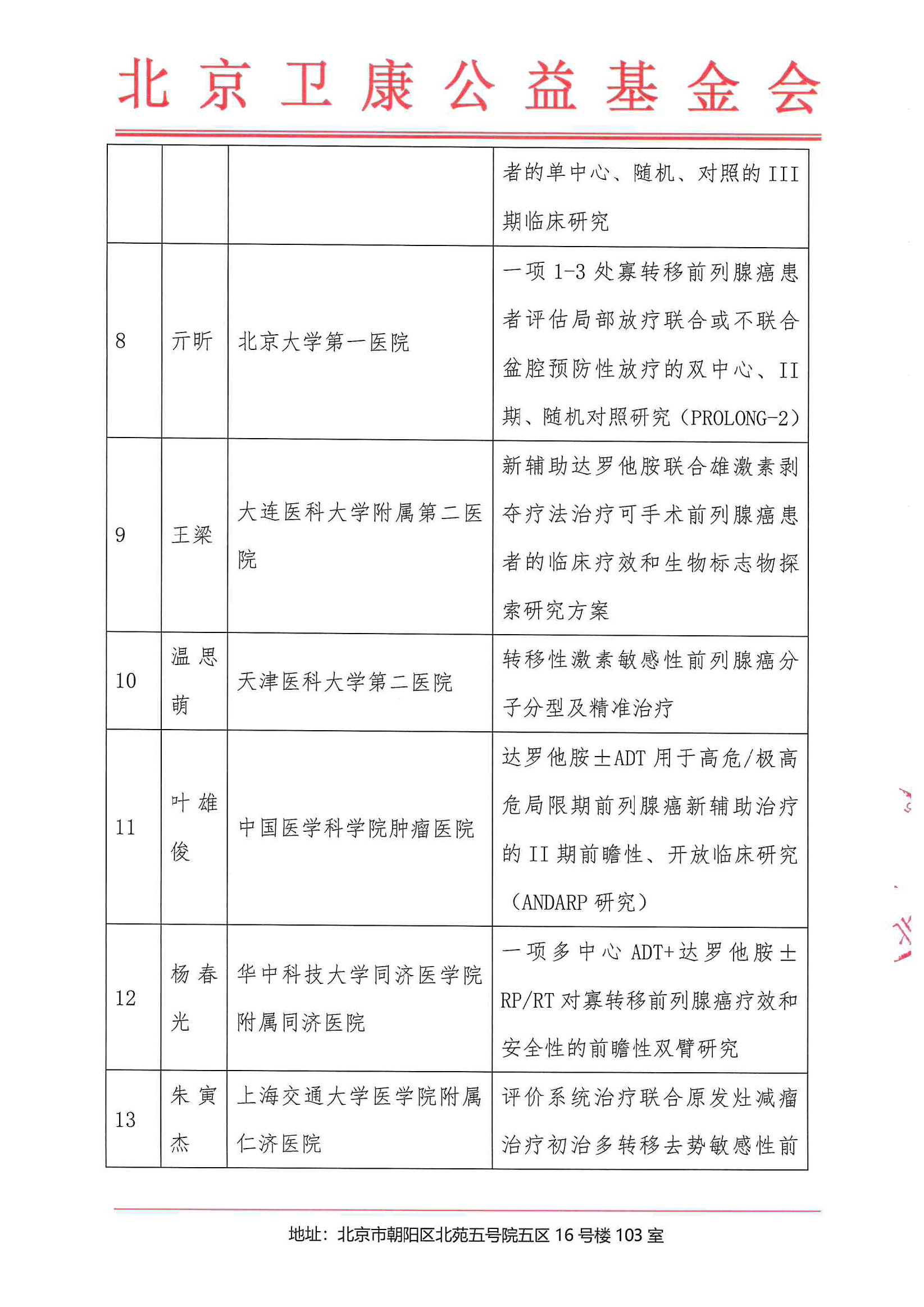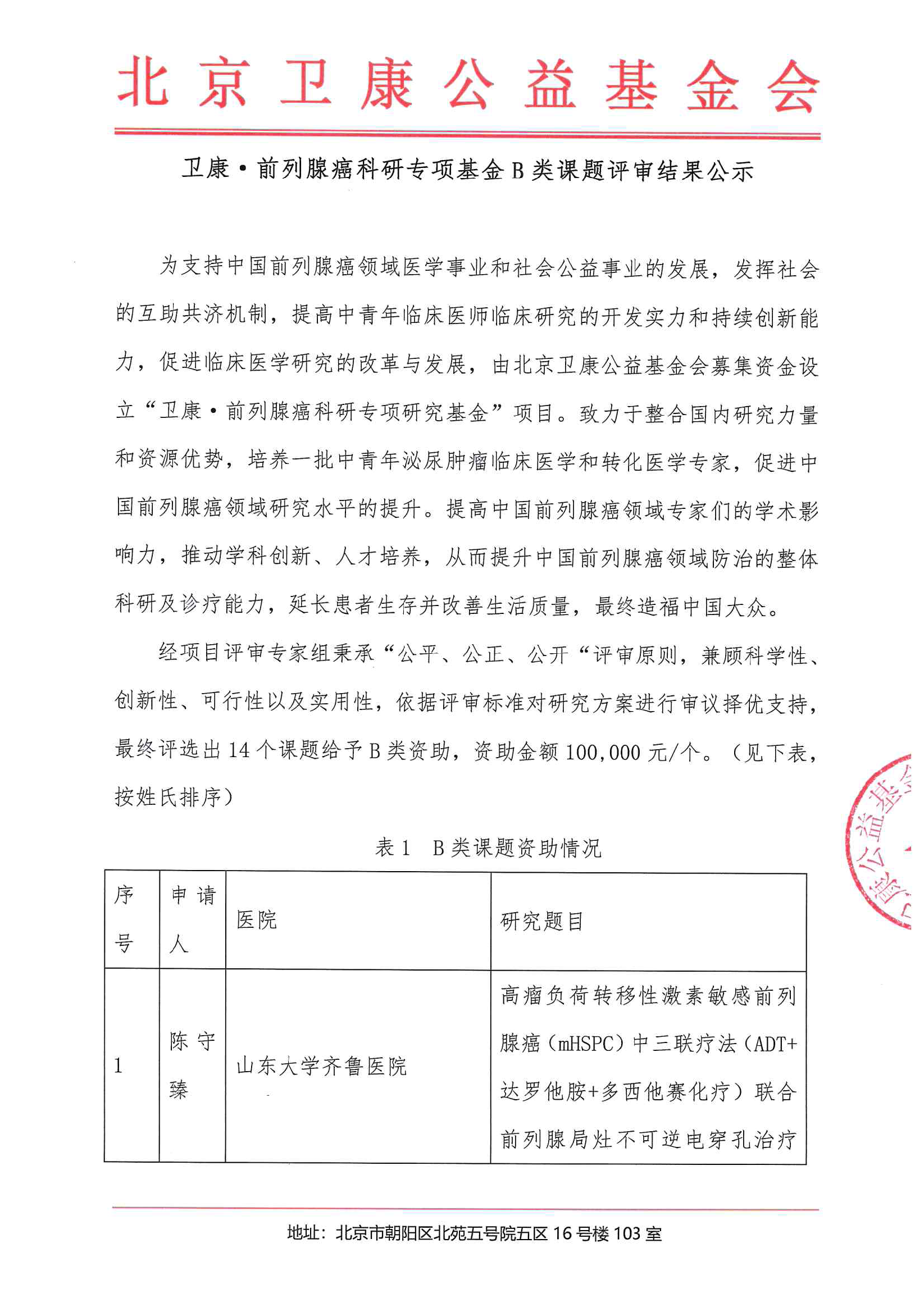 卫康·前列腺癌科研专项基金B类课题评审结果公示