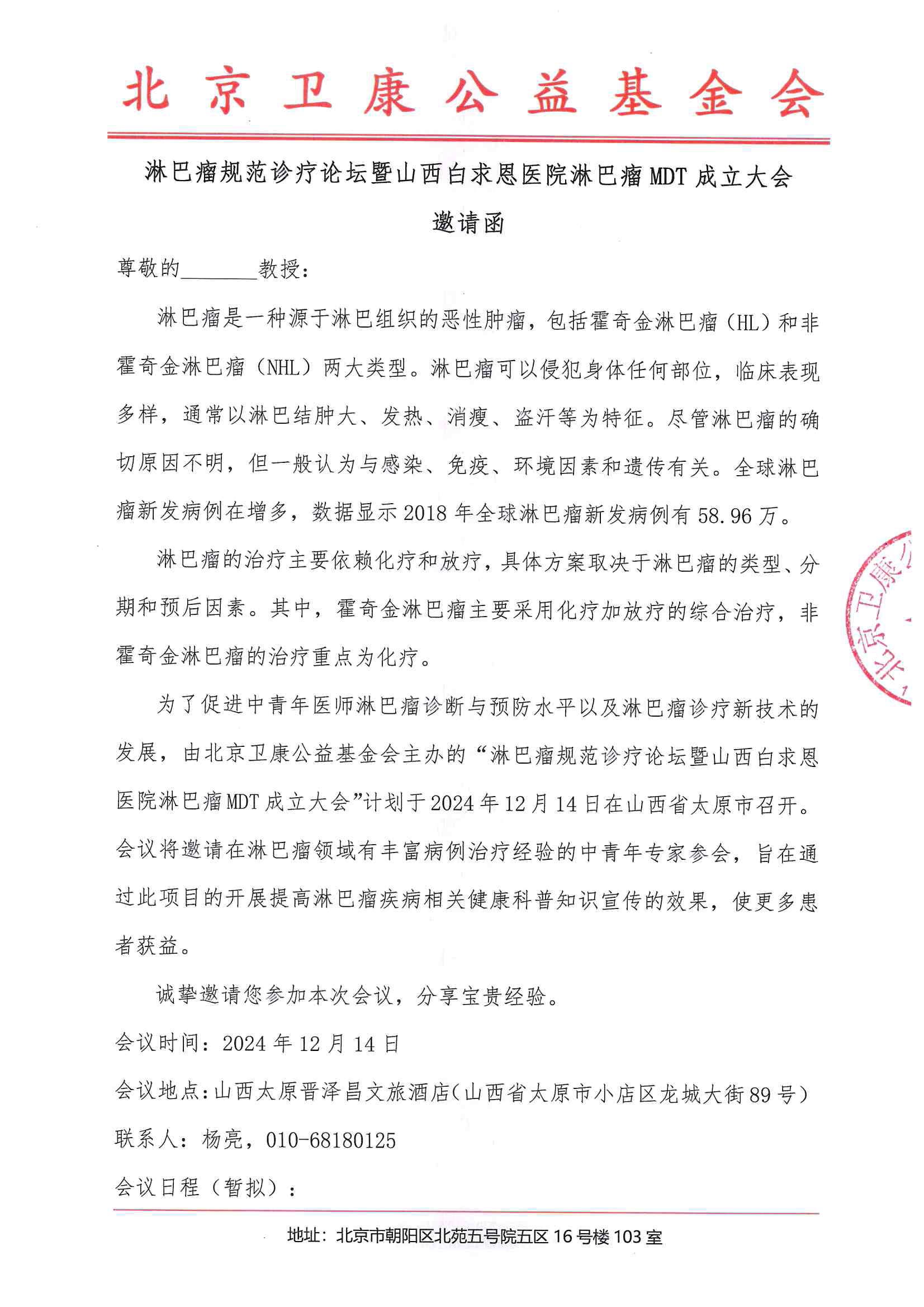 淋巴瘤规范诊疗论坛暨山西白求恩医院淋巴瘤MDT成立大会